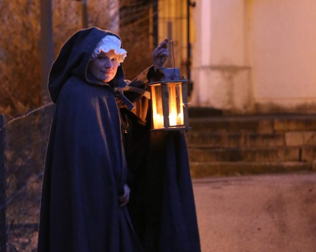 Der abendliche Spaziergang findet nur in der dunklen Jahreszeit statt. Wenn Sie mit Franzi finstere Gassen erkunden wollen, buchen Sie unter 0162 / 64 11 861 oder schreiben Sie uns.