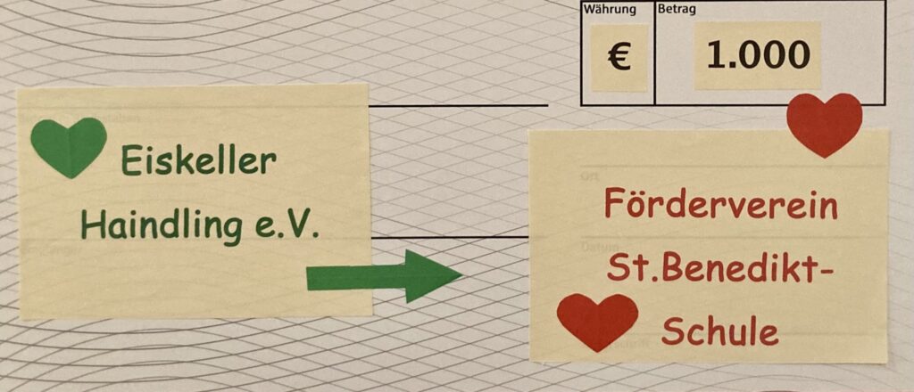 Auch in diesem Jahr konnte der Eiskeller durch seine Einnahmen eine Spende übergeben. Frau Brigitte Inkoferer überreichte den Spendengutschein in Höhe von 1.000 € an Rektorin Gabriele Zillner von der Förderschule St. Benedikt Mallersdorf auf deren Weihnachtsmarkt. Die Labertal Zeitung berichtete in der Ausgabe vom Samstag, 06.12.2025.